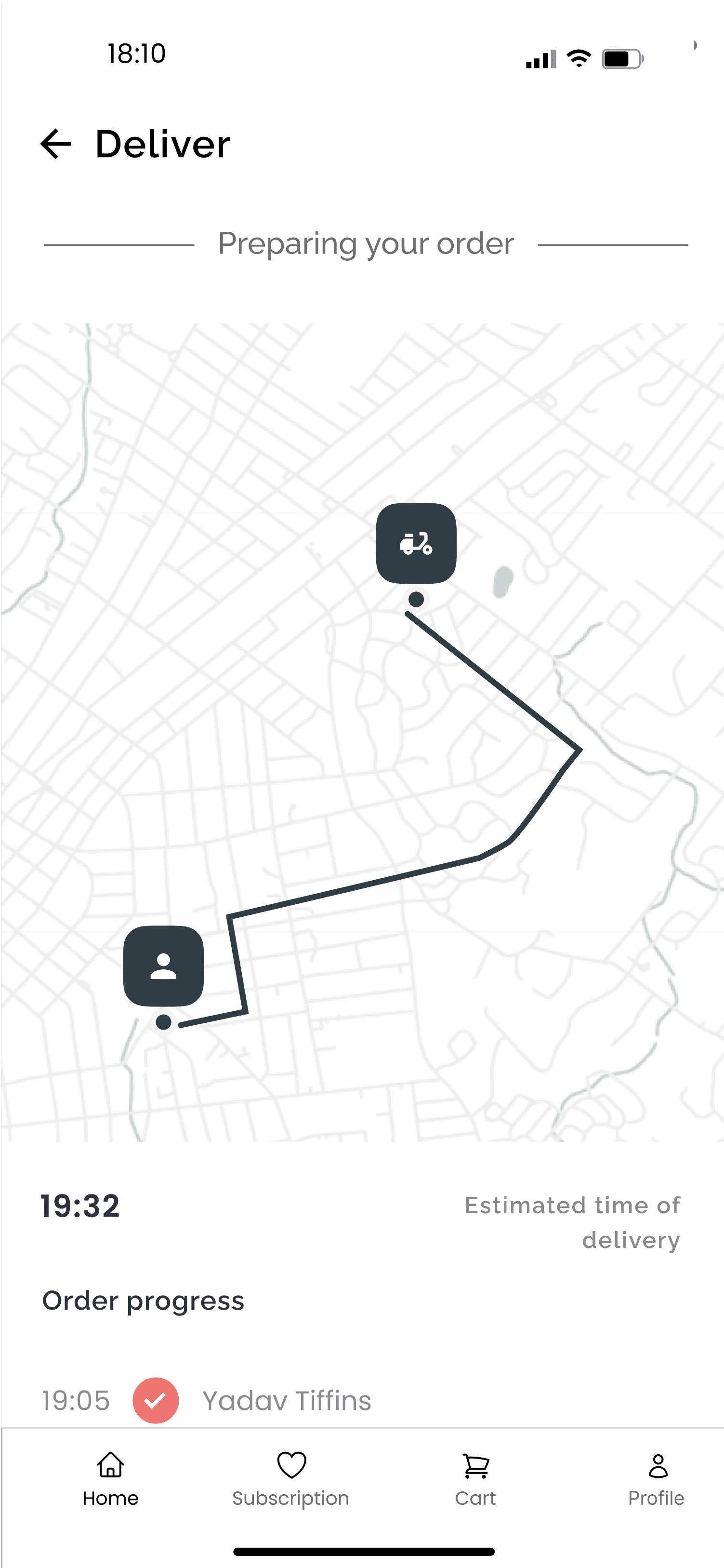 Tracks the meal’s delivery through the app and receives the tiffin at the office on time.