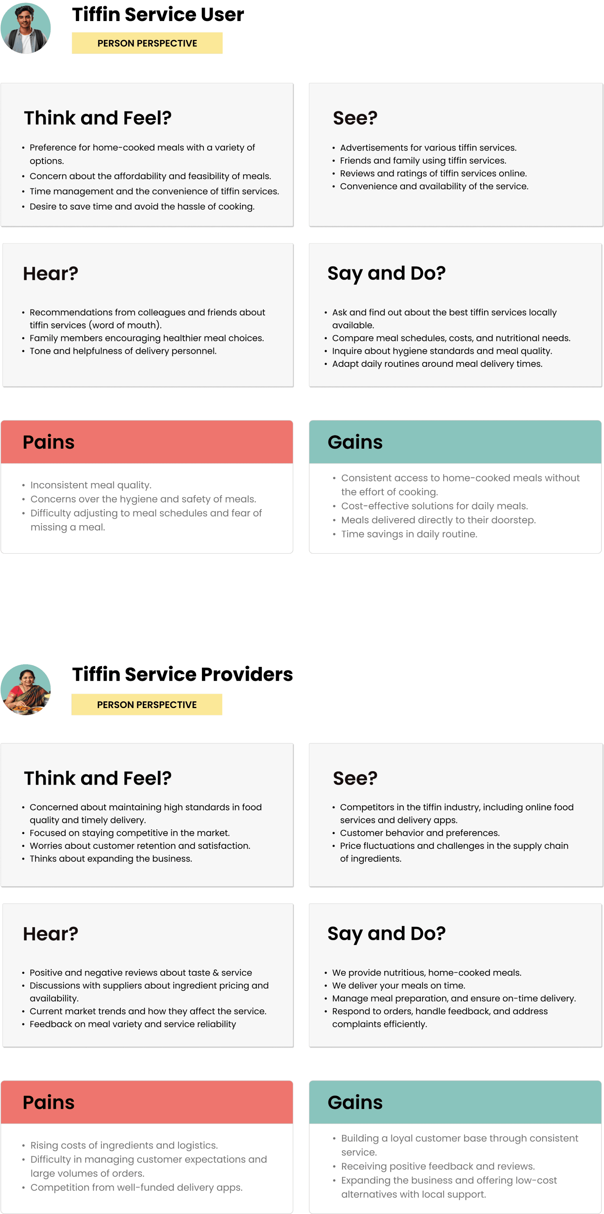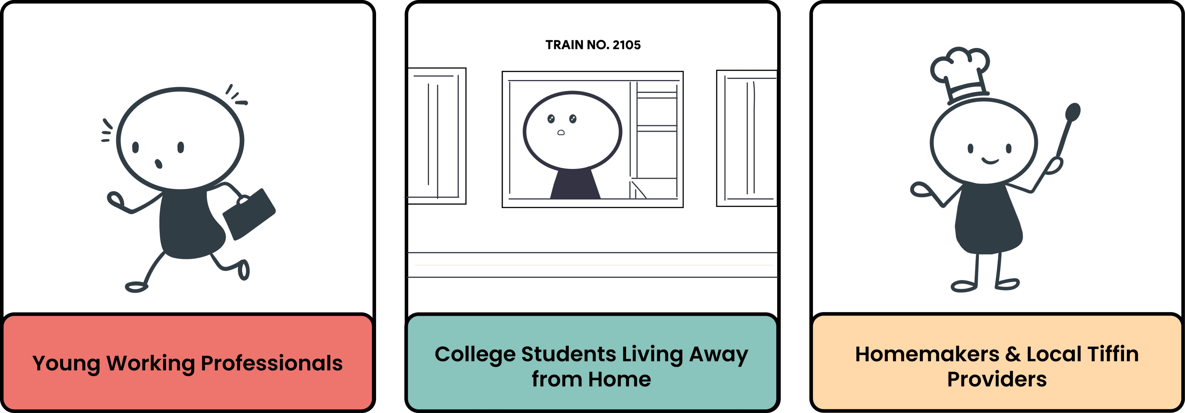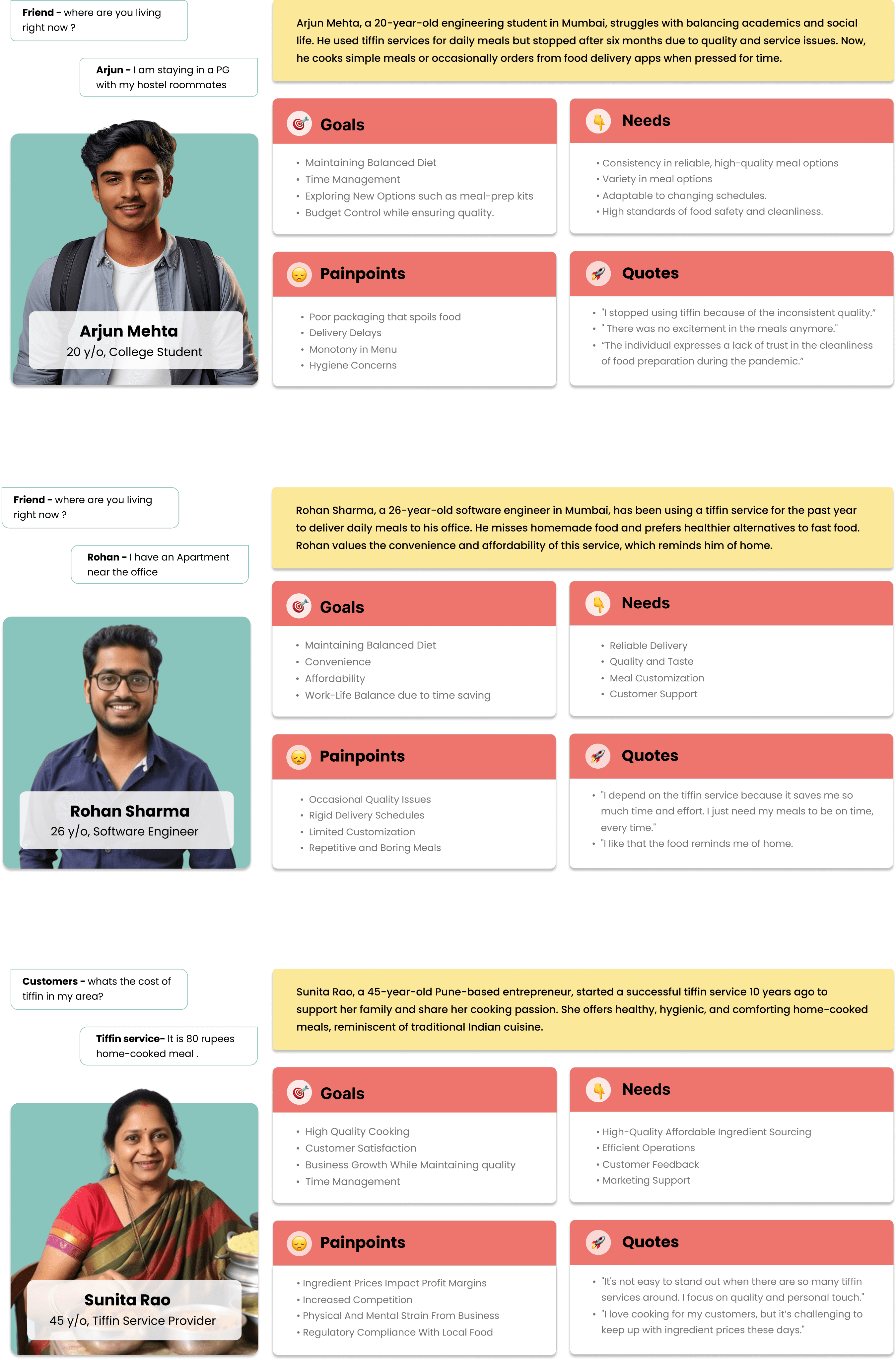 Home-style tiffin customers struggle with unreliable communication, unclear menus, and lack of flexibility in subscriptions, leading to mistrust and frequent drop-offs.