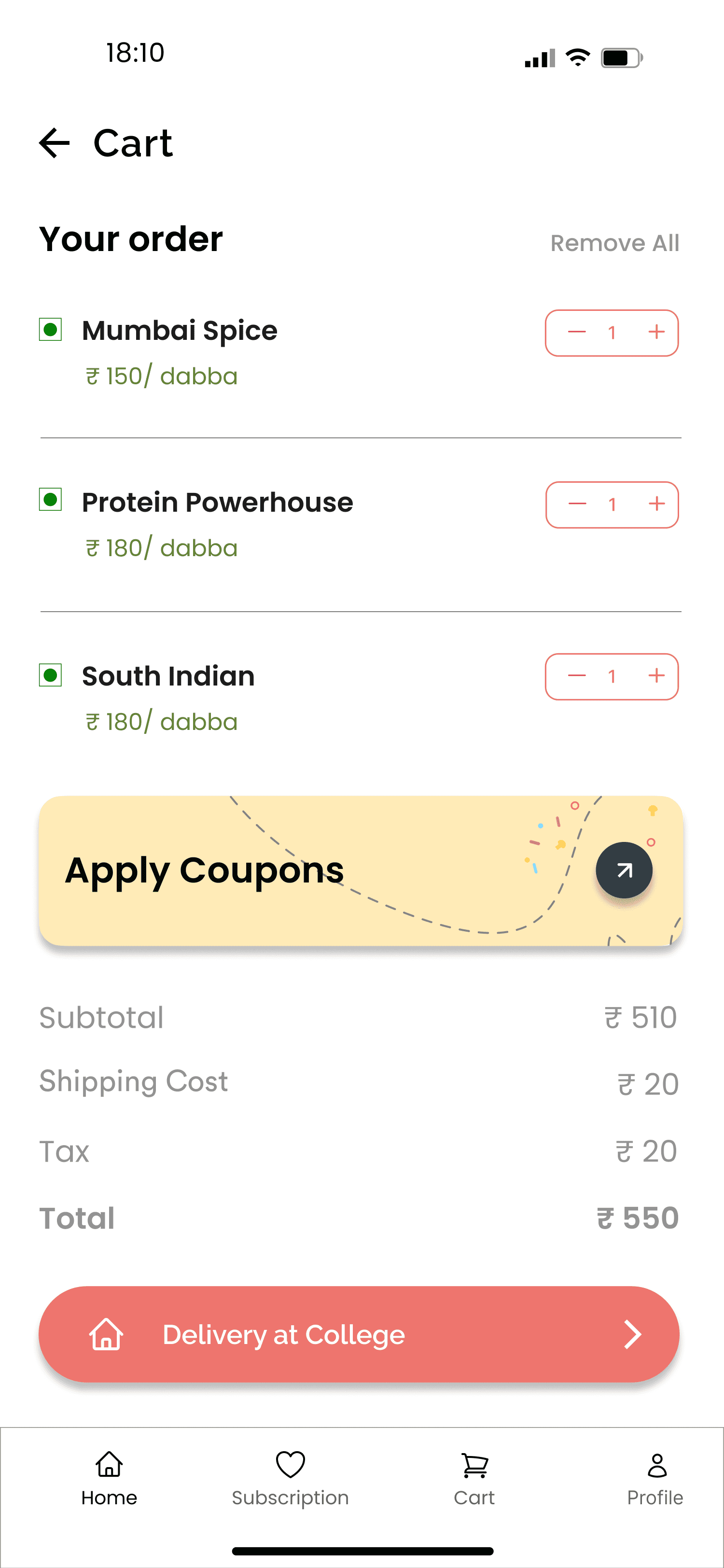 Integrating app with delivery services. The app helps user book, customize and track orders with one single tap. Another touchpoint being taken care of is the packaging problem. There is a significant gap in providing eco-friendly, microwave-safe, and technologically enhanced packaging solutions that cater to the modern consumer's need for convenience, quality, and sustainability.