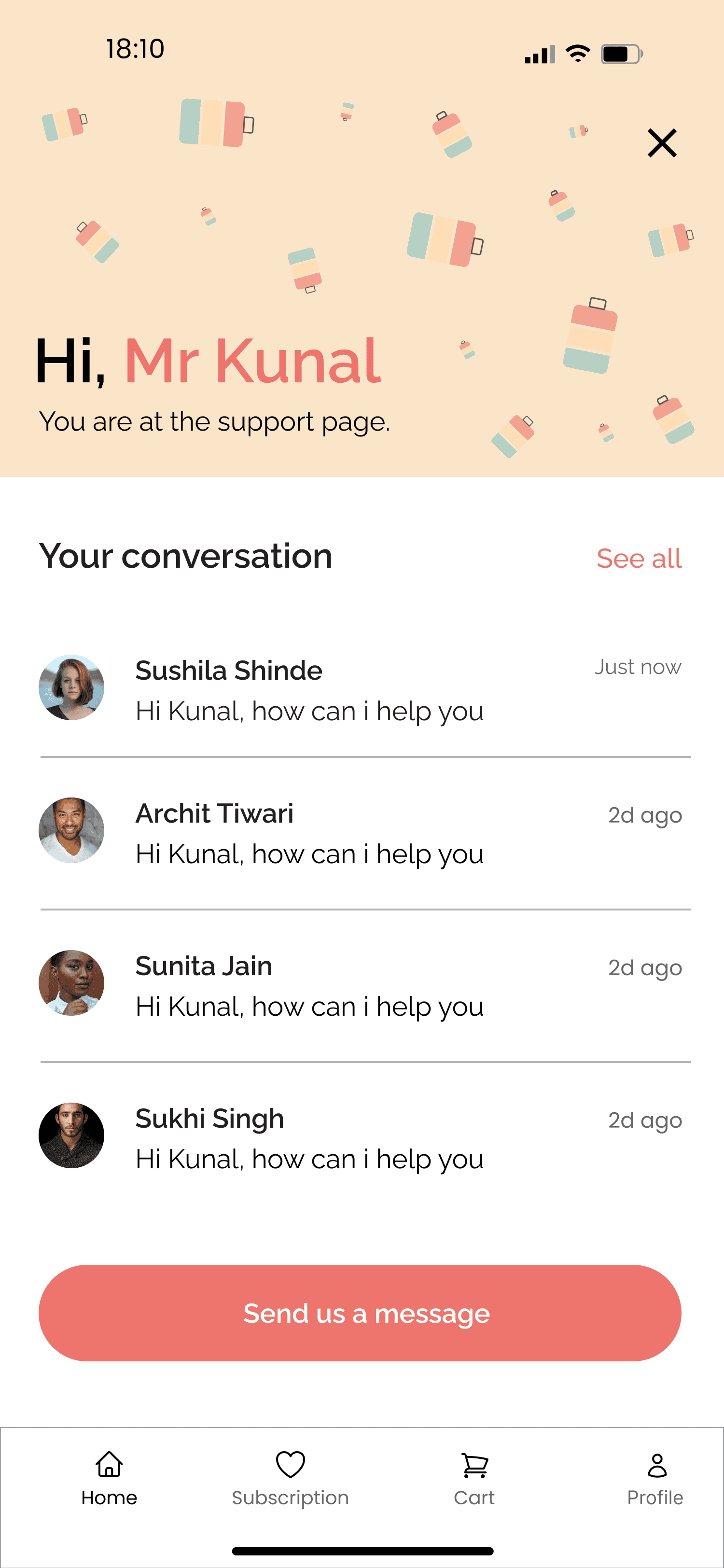 The chatbot helps users personally and offers quick access to support conversations, helping them easily reach out to the Amma team for assistance