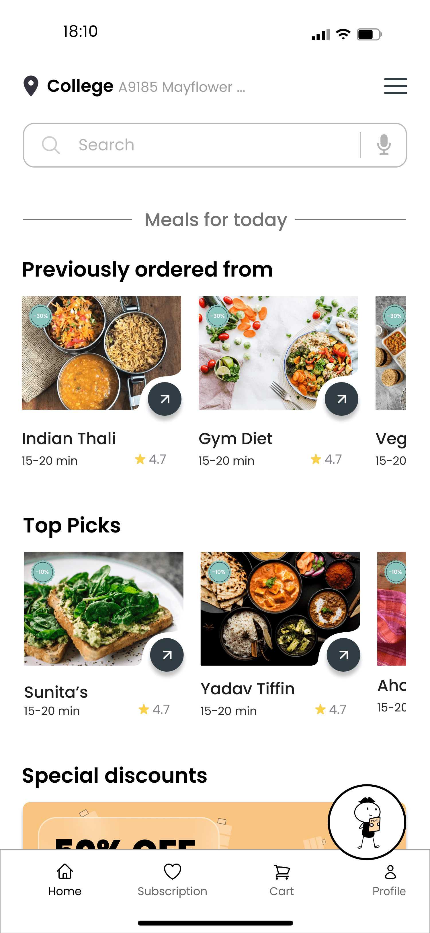 Curated meal options based on past orders, popular picks, and discounts make meal selection easy and personalized.
